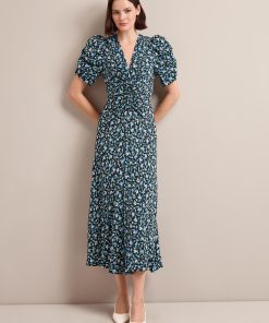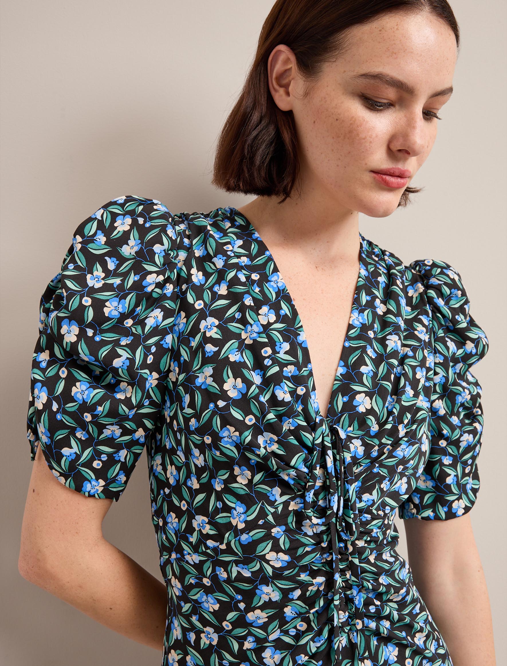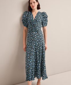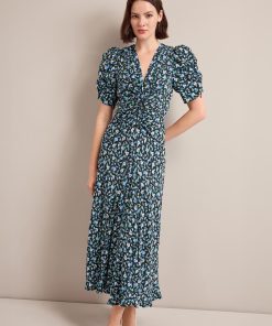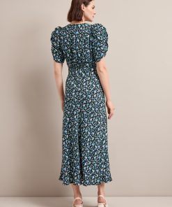 On-trend and ready to party, Ophelia has a dramatic silhouette and vintage feel with its oversized statement sleeve and voluminous bias-cut skirt with godet inserts. Fully lined, the ruche detailing and shirring at the back waist make it fitted yet forgiving. Accessorize with a killer heel and cocktail in hand and get ready to receive your compliments.